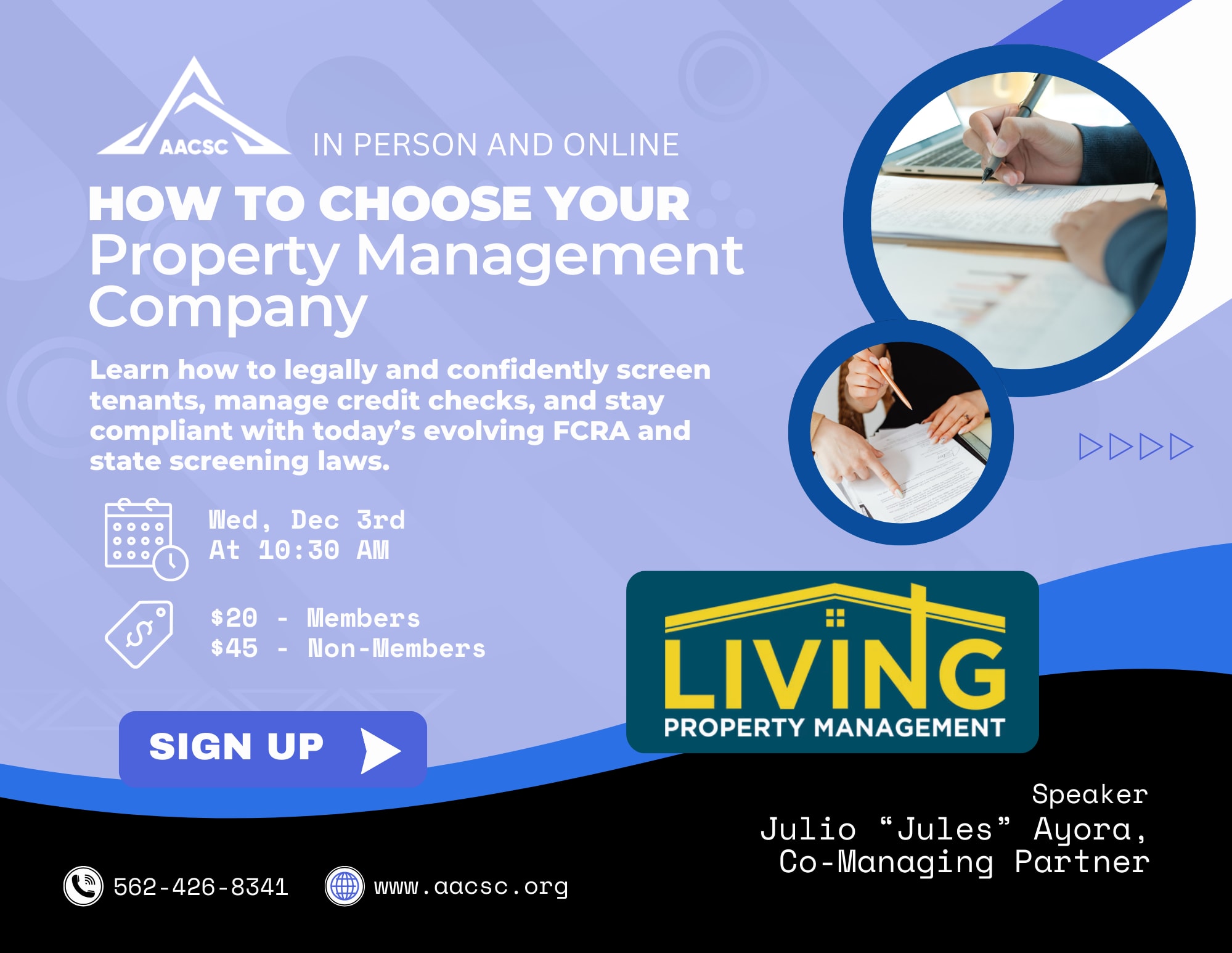 This class is ideal for owners who currently work with a property management company, are considering hiring one, or want a clearer understanding of their rights and responsibilities under a management agreement.