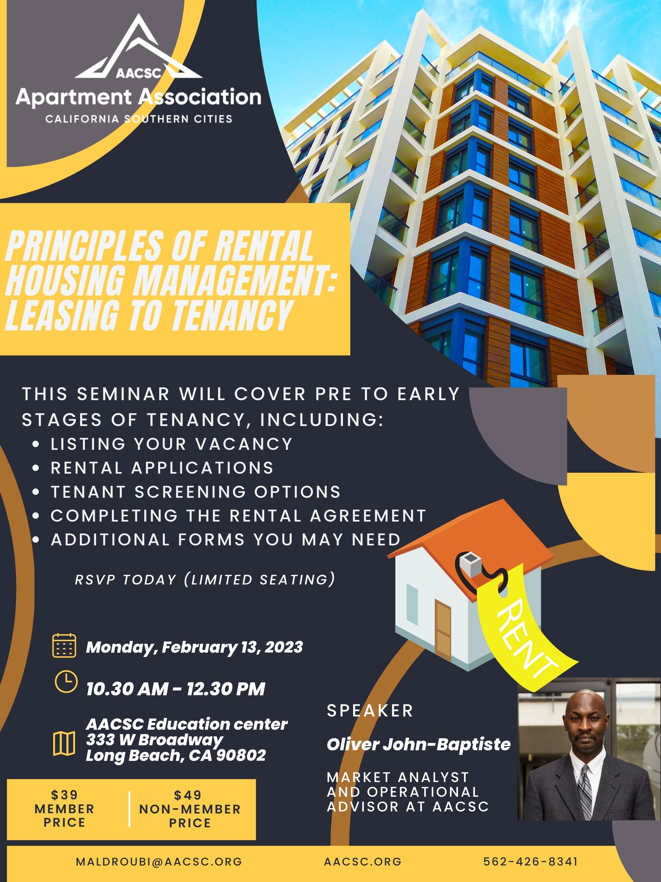 10:30 am to 12:00 pm at the Apartment Association, California Southern Cities